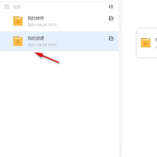 在列表中云盘默认新建了两个文件夹,分别是我的转存和我的资源;