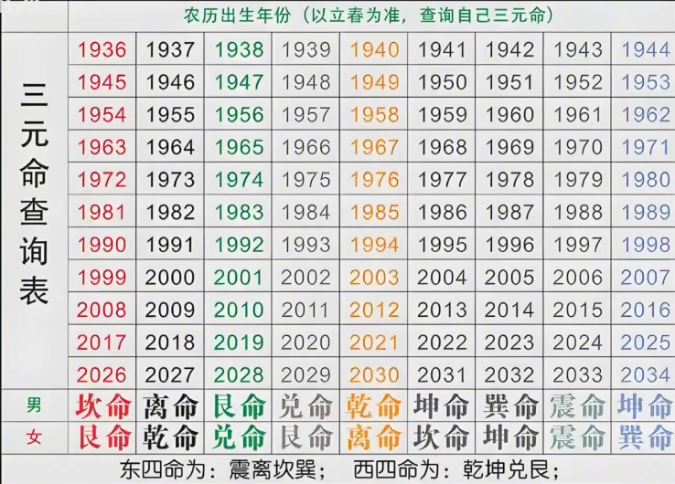 为了方便读者查询,本文最后附上了男女命卦速查表。如有需要,读者可自行查阅。