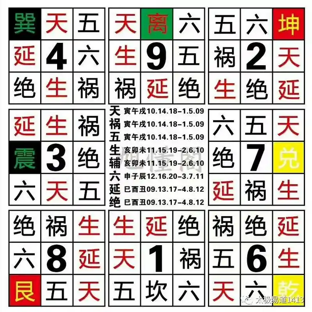 艮六绝祸生延天五,震延生祸绝五天六。